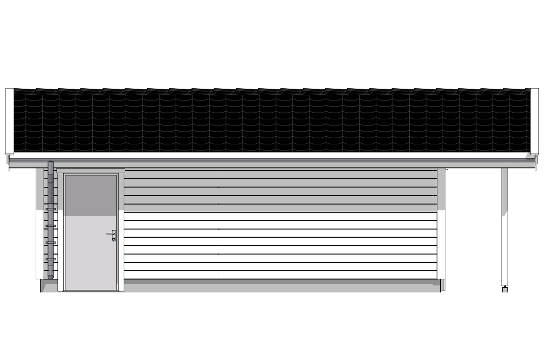 En dør er plassert i bakre del av bygget som lar deg gå ut og inn av garasjen uten å måtte heve porten.